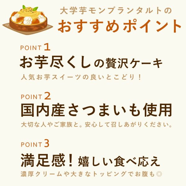 他の画像を見る 【おいもや本店会員様限定で割引中!】 大学芋のモンブランタルト (5号) 冷凍便 通常価格 ¥ 4,680 税込 会員価格 ¥ 4,446 税込 在庫切れ 詳細を見る お気に入りに登録する